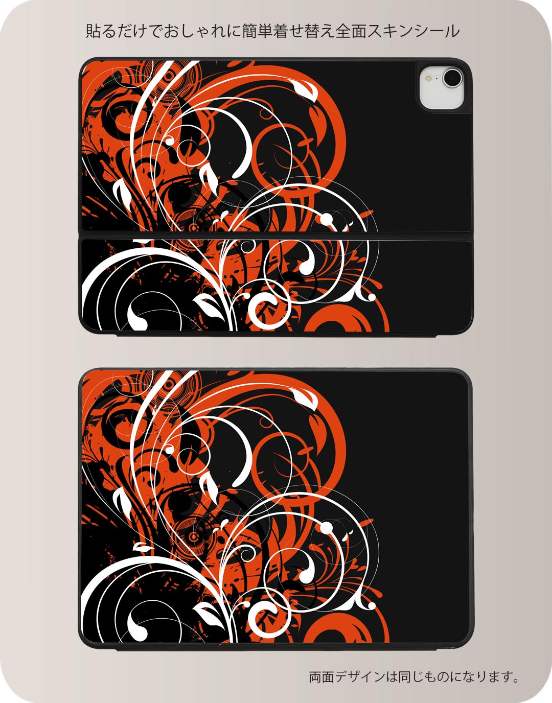 Smart Keyboard Folio 用 スキンシール 11インチ iPad Pro用 第1-4世代 iPad Air 第4-5世代 対応 全面スキンシール フル 前面 背面 保護シール 人気 007550 植物 赤 レッド 黒 ブラック