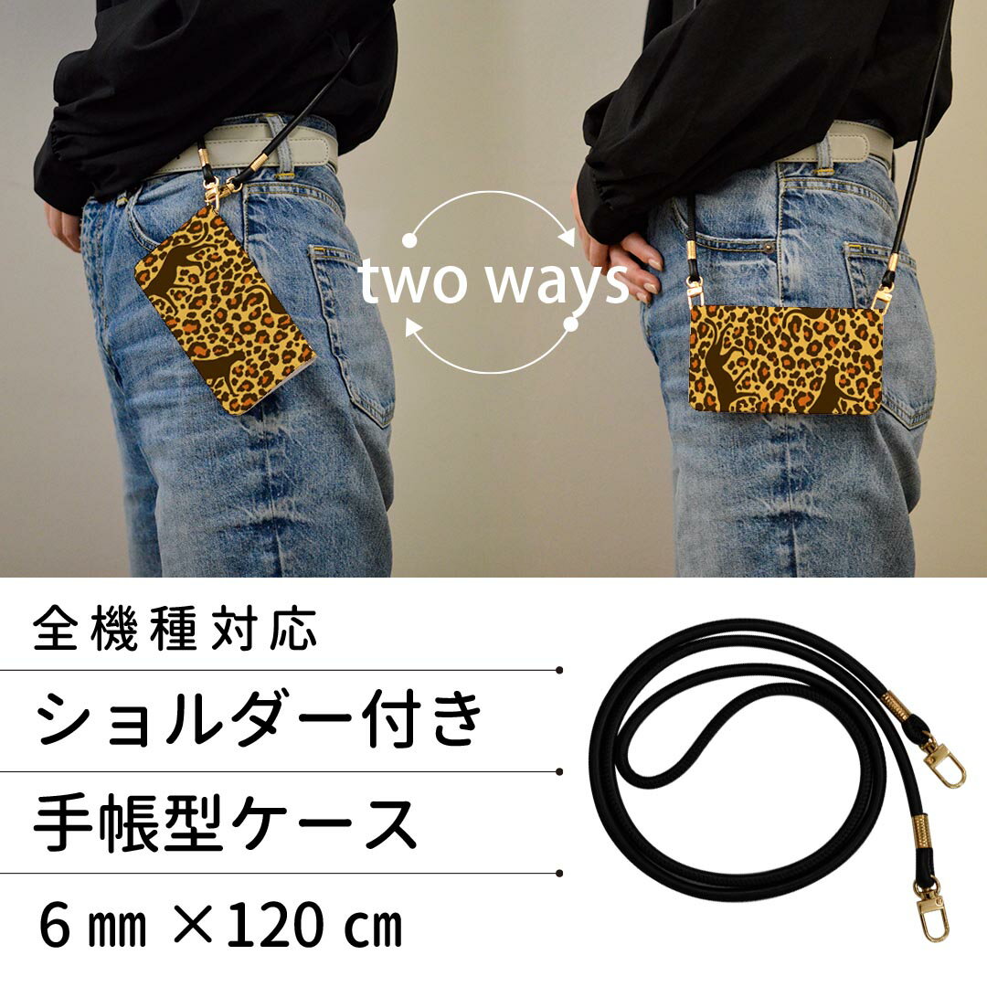 iPhone13pro 6.1インチ 専用 各キャリア iPhone13 Pro プロ 共通対応 ストラップ付き ケース ショルダー スマホ 落下防止 手帳型 マグネット式 ピタッと閉まる スマホカバー 肩掛け 斜めかけ 006797 アニマル 動物 ヒョウ柄 模様