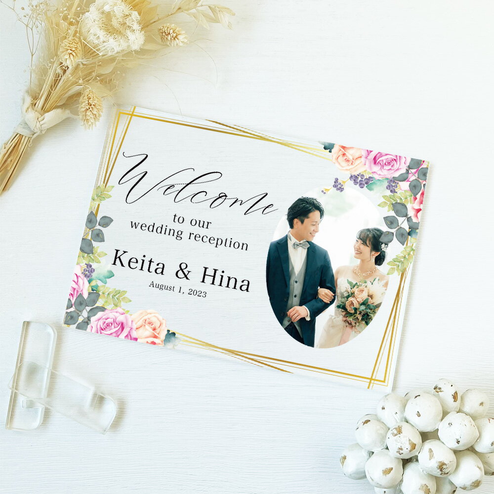 【限定クーポン】 ウェルカムボード アクリル 結婚式 ウェディング ウェルカムスペース 受付 受付装飾 ロビー 装飾 子育て感謝状 写真立て フォト フレーム 花 A45