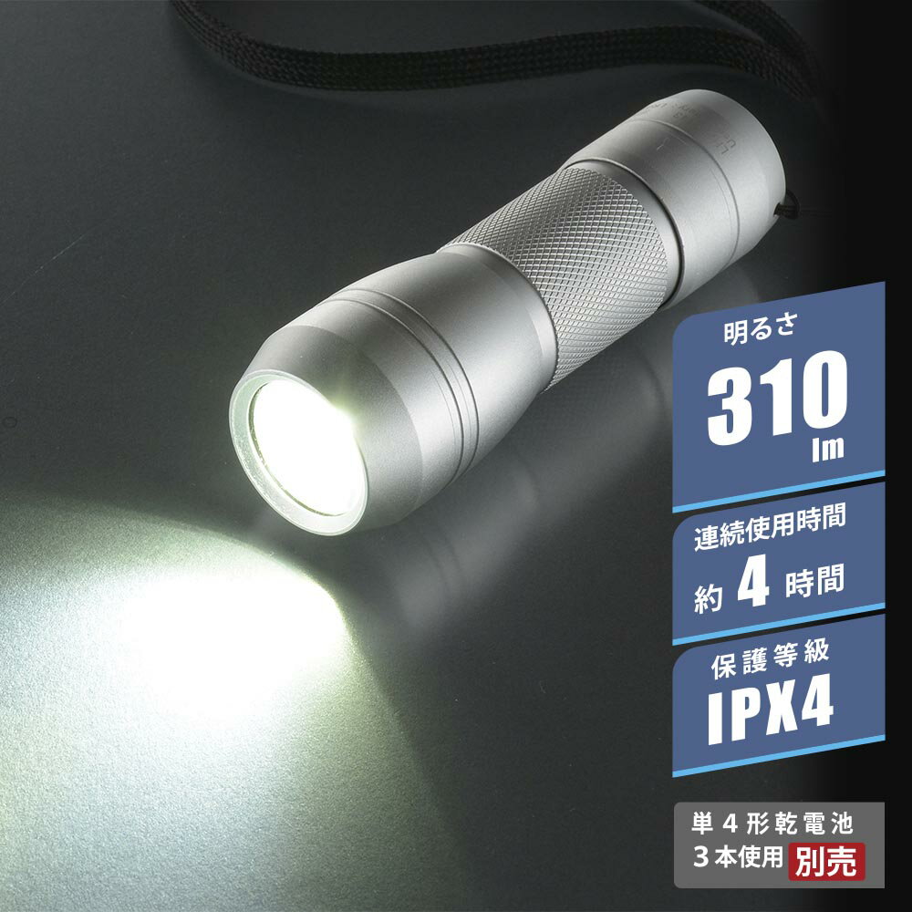 LEDライト ピュアビーム 310lm (品番)08-1375 LHA-Y143-S [電池式ライト:懐中ライト オーム電機]