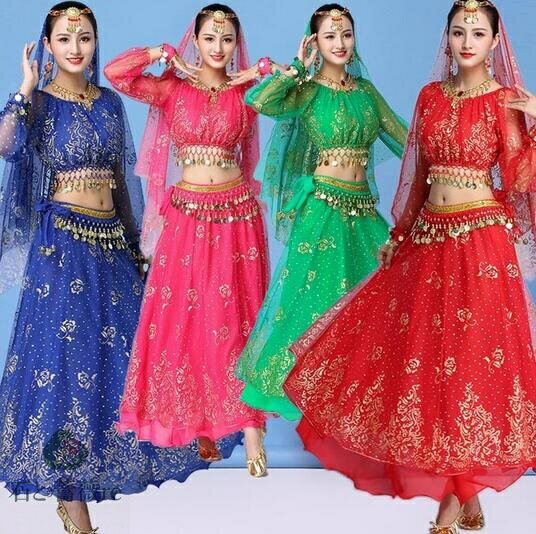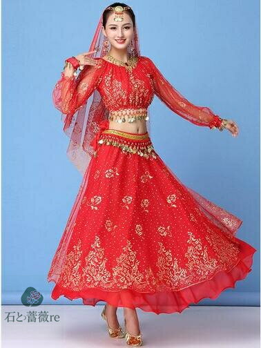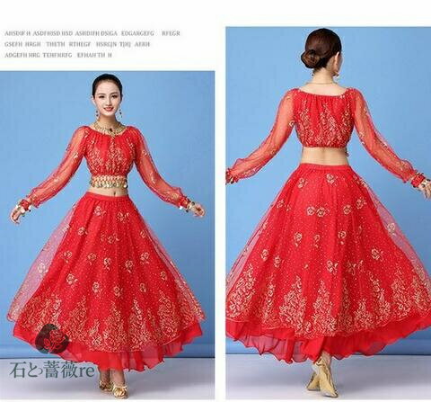 ベリーダンス衣装 レディース インドダンス 演出服 ヒップスカーフ 4色 長袖 舞台 発表会 コスチューム ステージ衣装