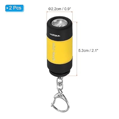 PATIKIL 5.3cm ミニポータブルLEDキーホルダー懐中電灯 LED懐中電灯 2個 EDC 持ち運び可能 小さいトーチ 充電付き イェロー