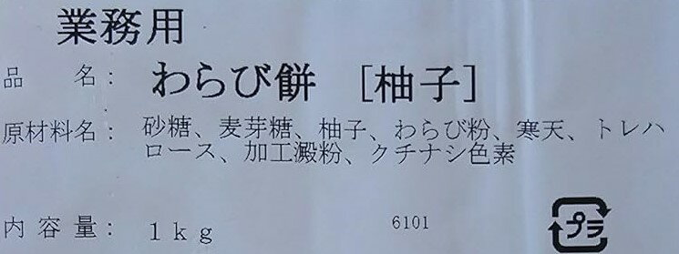 和生菓子 わらび餅 柚子 1Kg×12P(P1,100円税別)GFC 冷凍 業務用 ヤヨイ