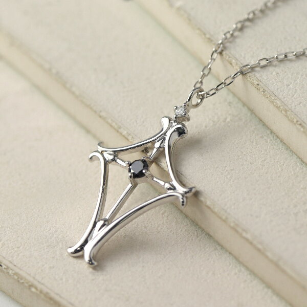 ブラックダイヤモンド クロス ネックレス K10...