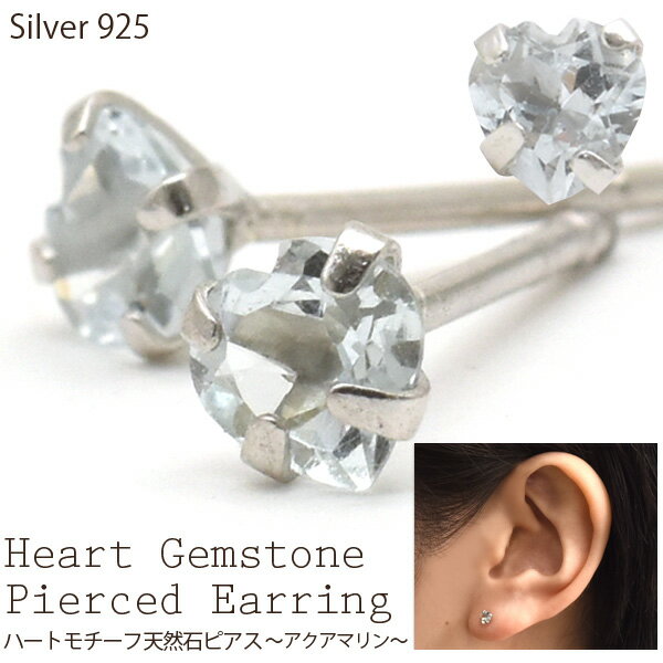 送料無料 シルバー925 天然石ハートピアス(...