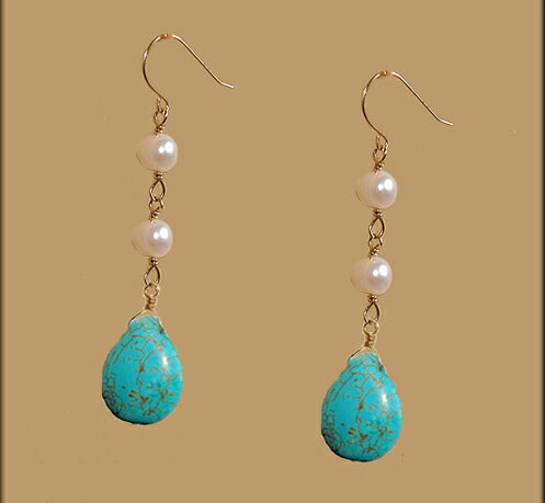 ターコイズ トルコ石 ロング ピアス 18金 ホ...