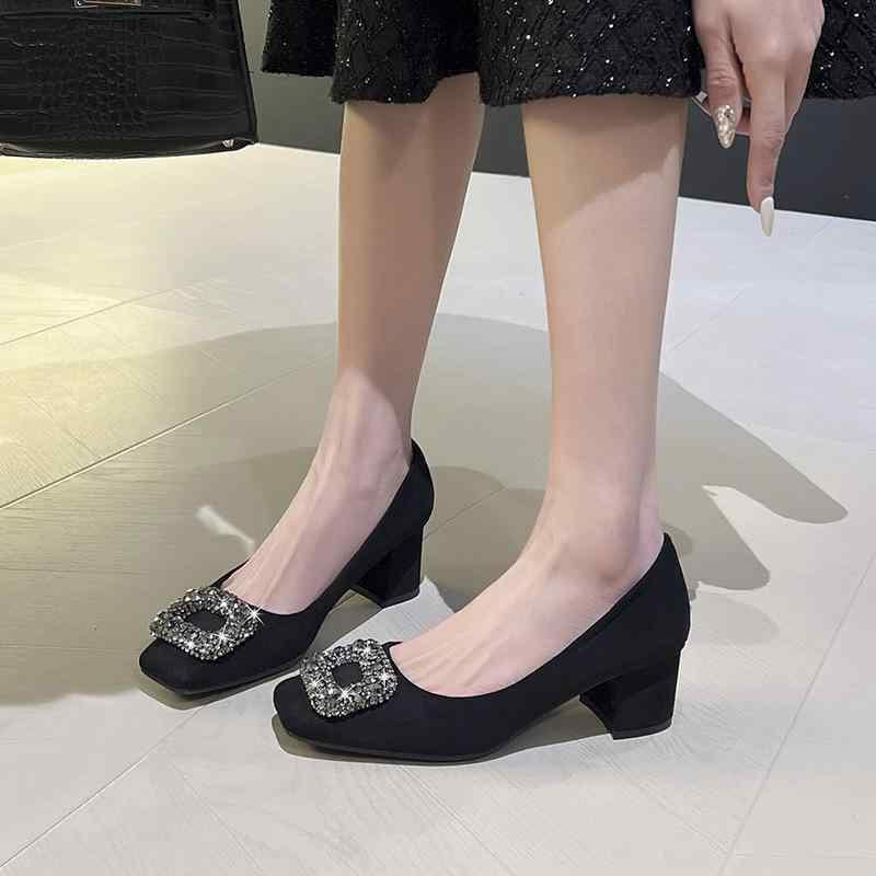 パンプス レディース スクエアトゥ 太ヒール...