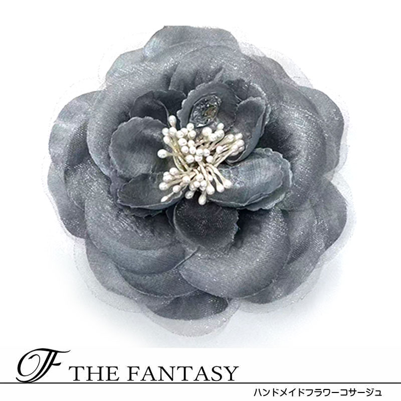 艶サテンとオーガンジーのコサージュ 日本...